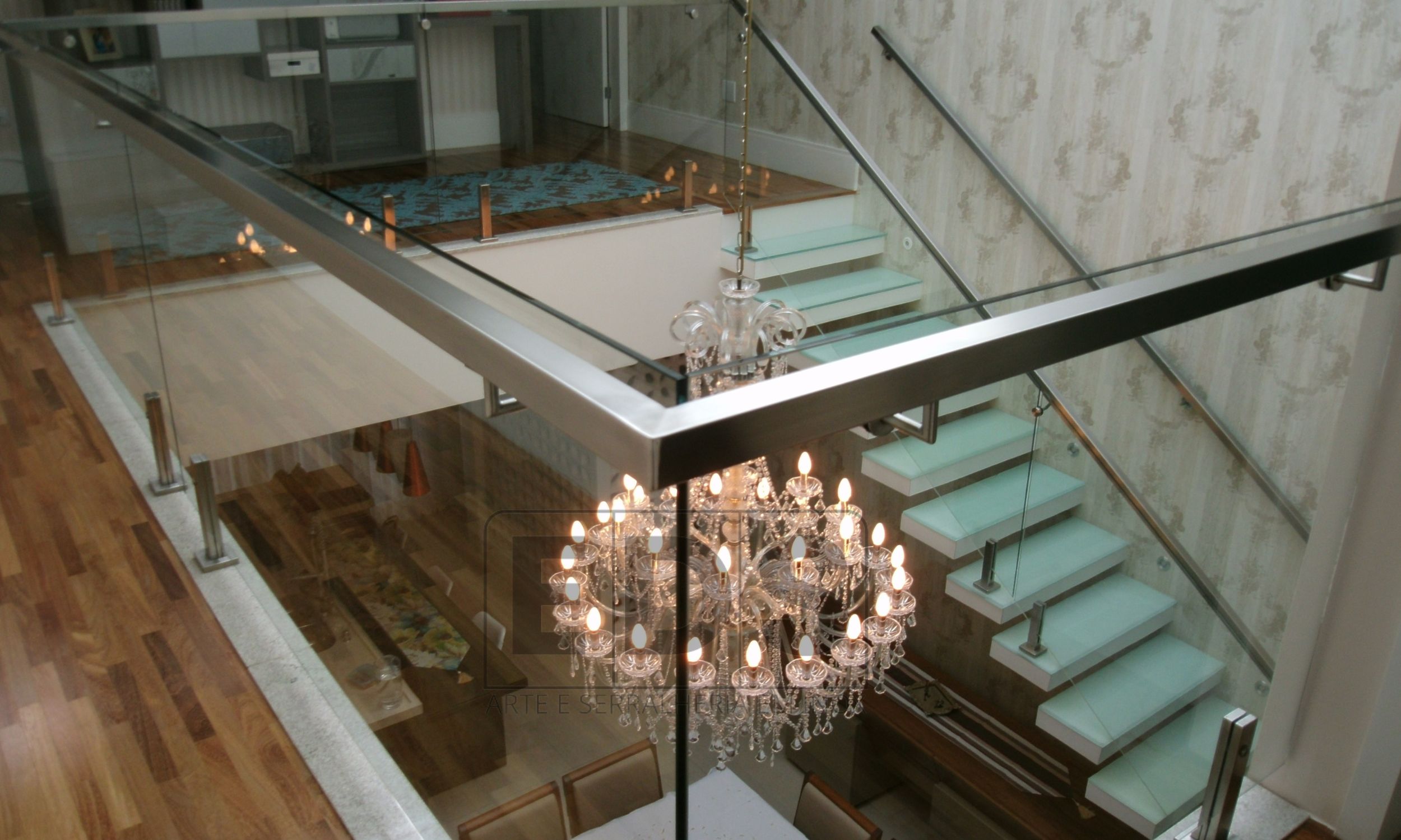O corrimão de inox com vidro une elegância e segurança, proporcionando um visual leve e moderno. Com a transparência do vidro e a resistência do inox, é ideal para quem busca sofisticação em áreas internas e externas.