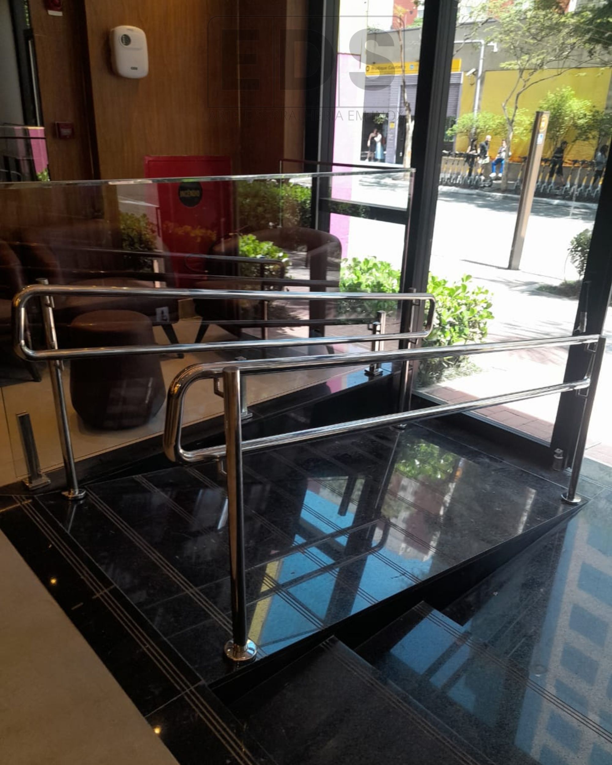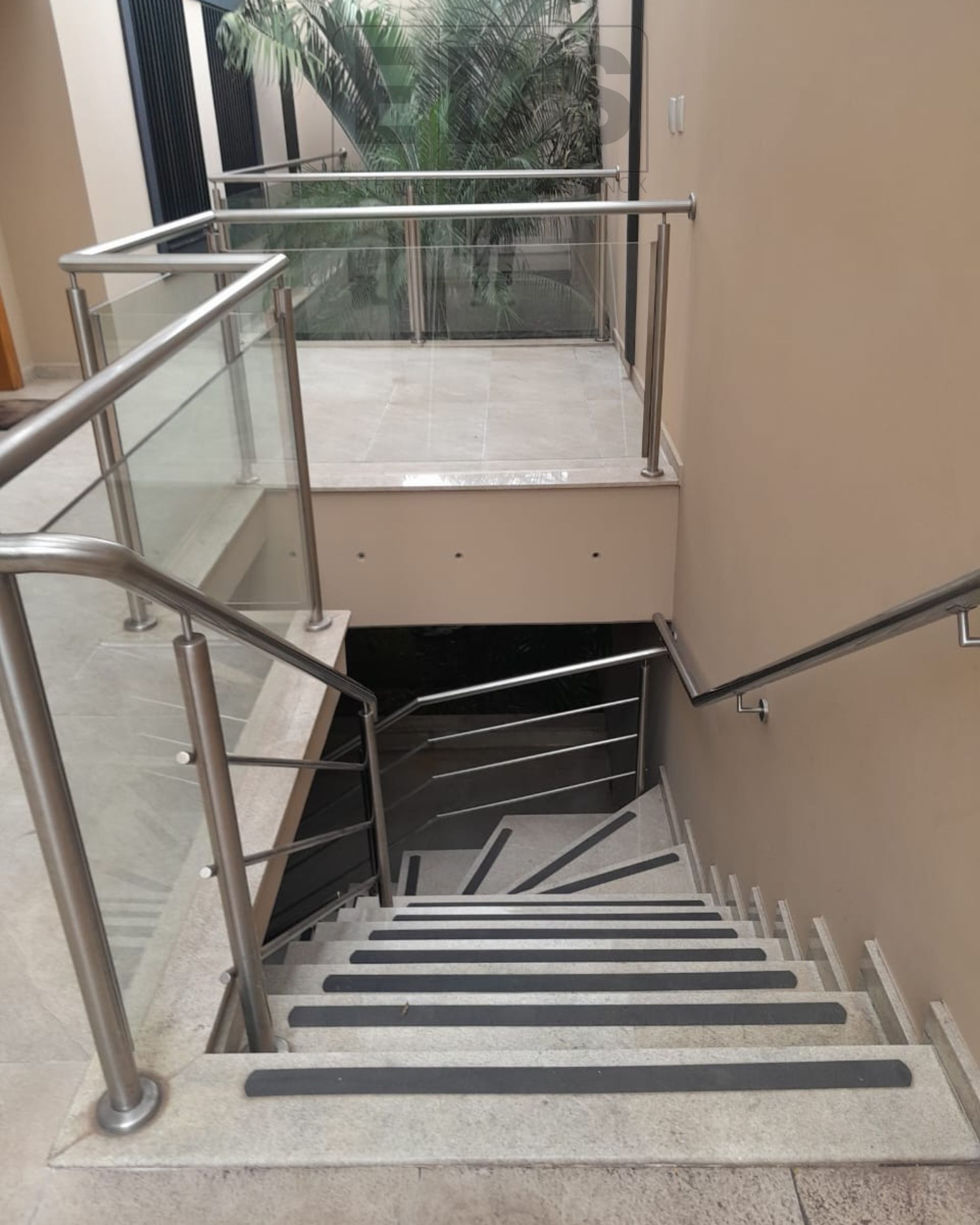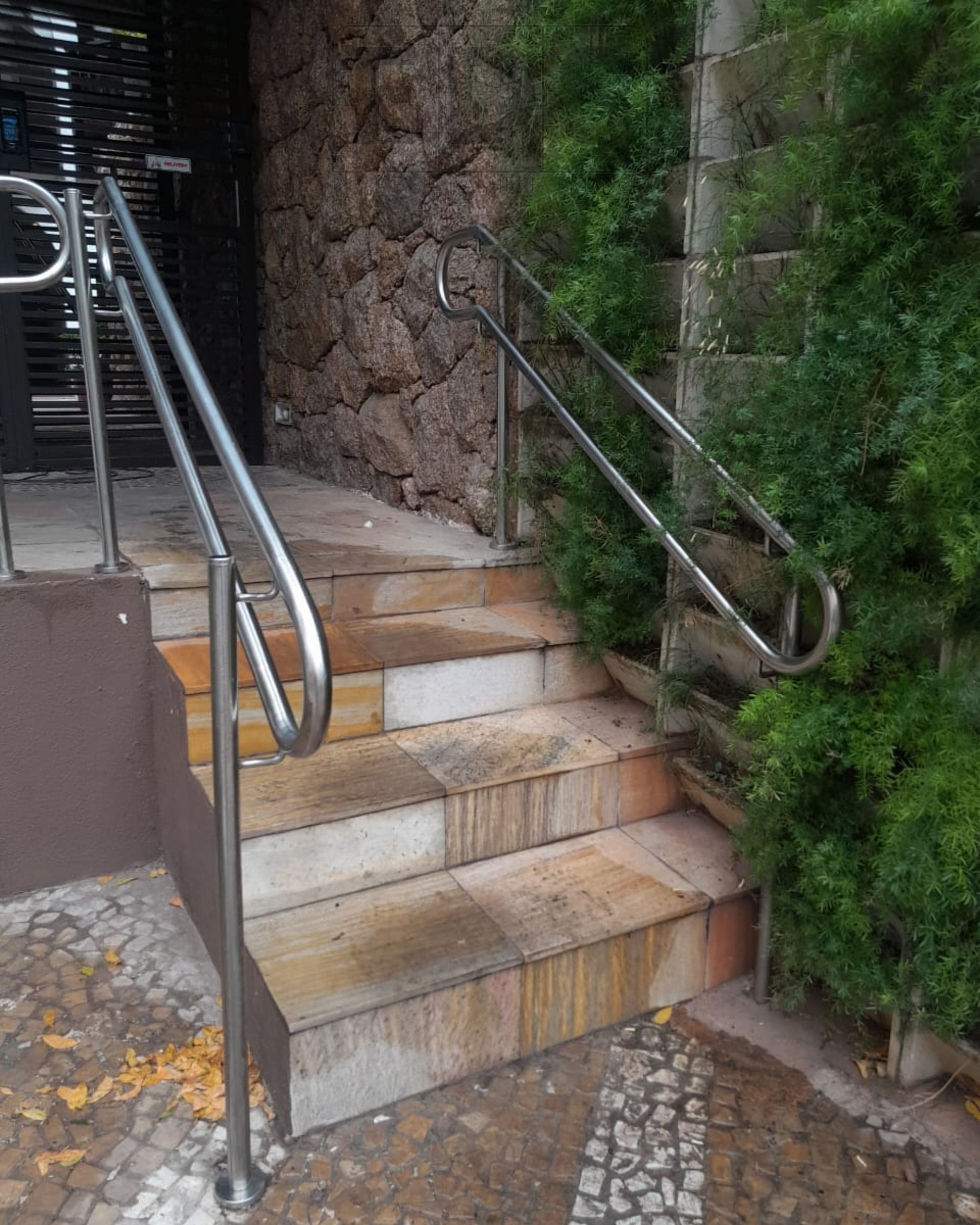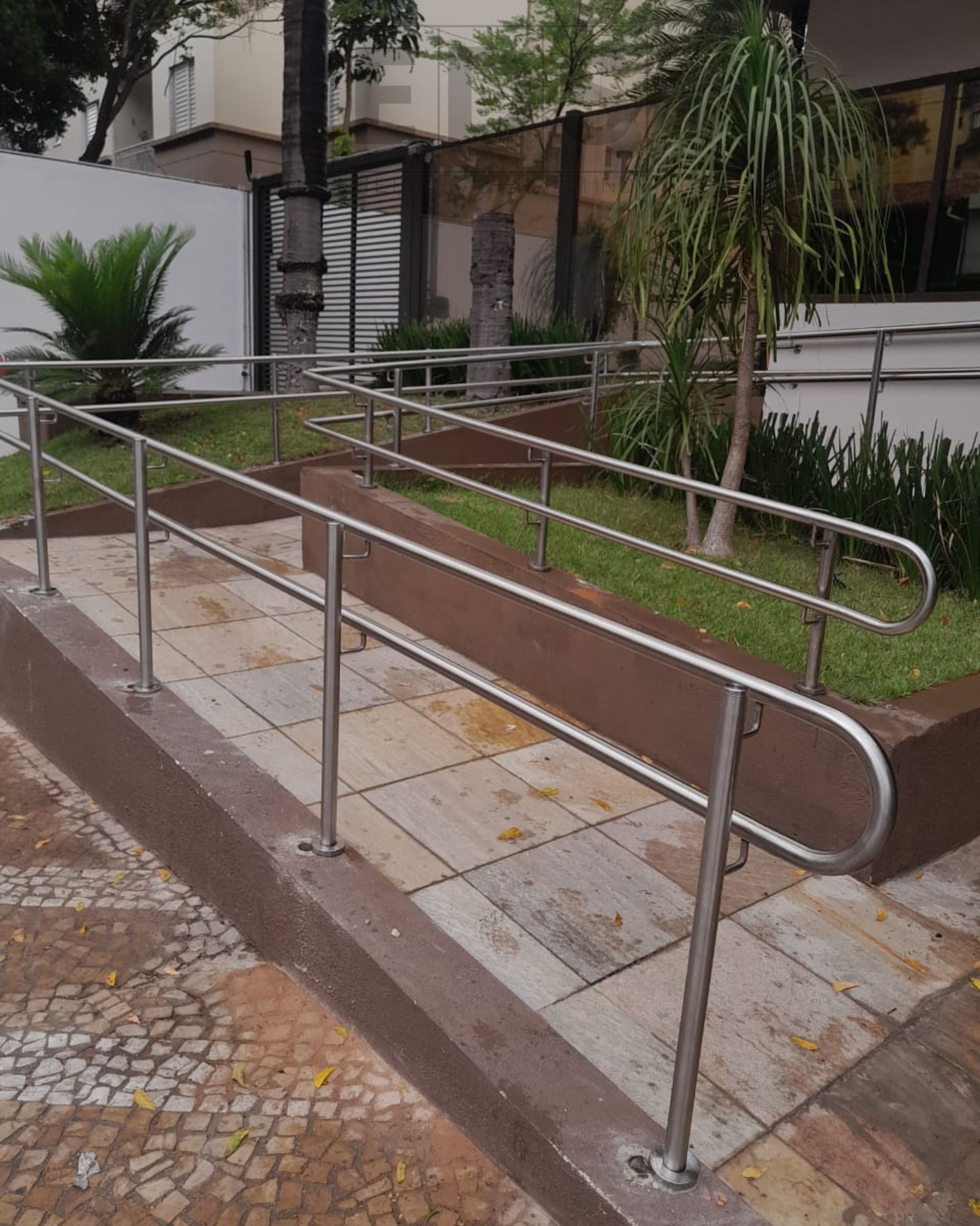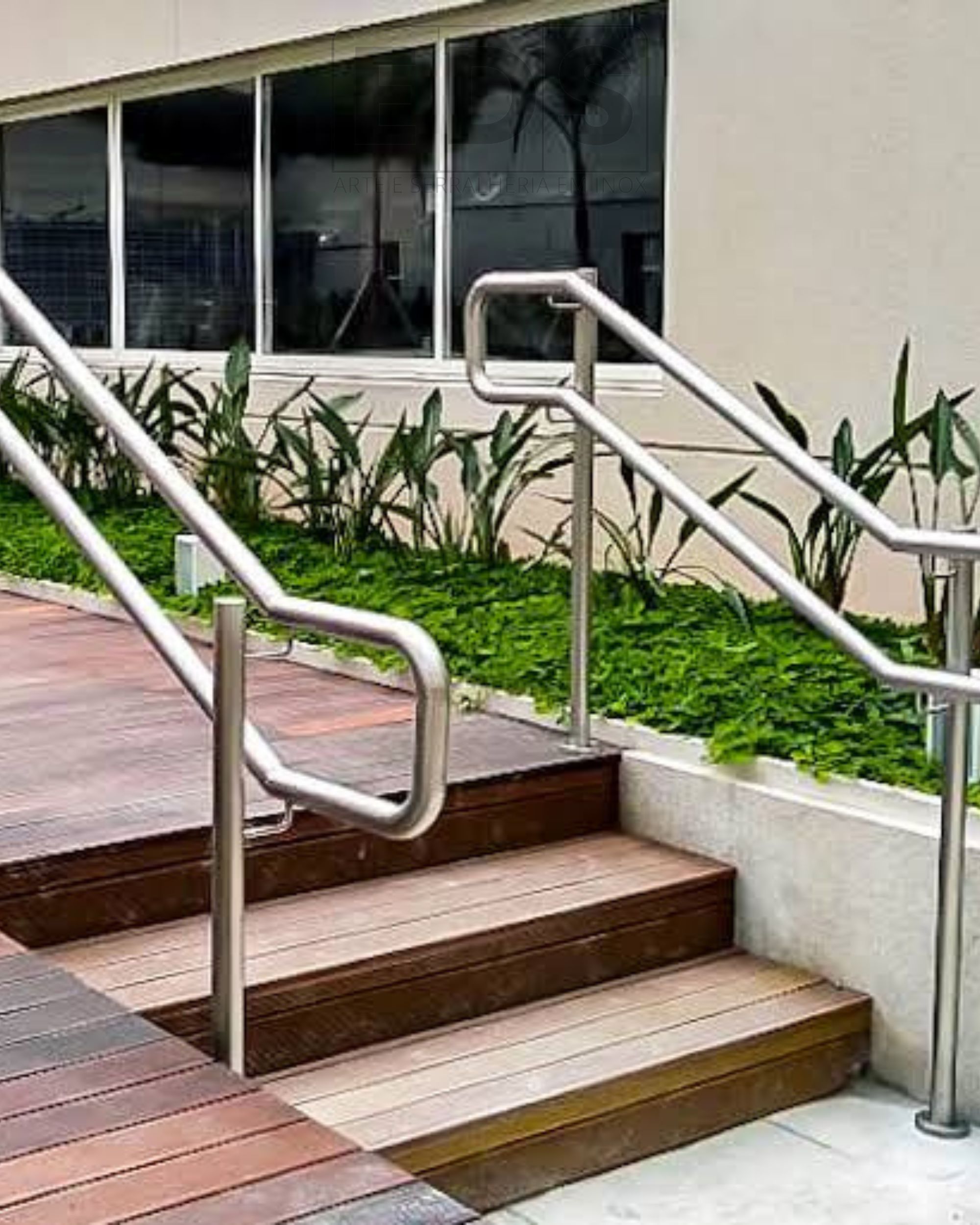 A instalação de corrimões de inox proporciona segurança, principalmente em escadas e rampas, sendo uma opção segura e elegante para diversos tipos de espaços.